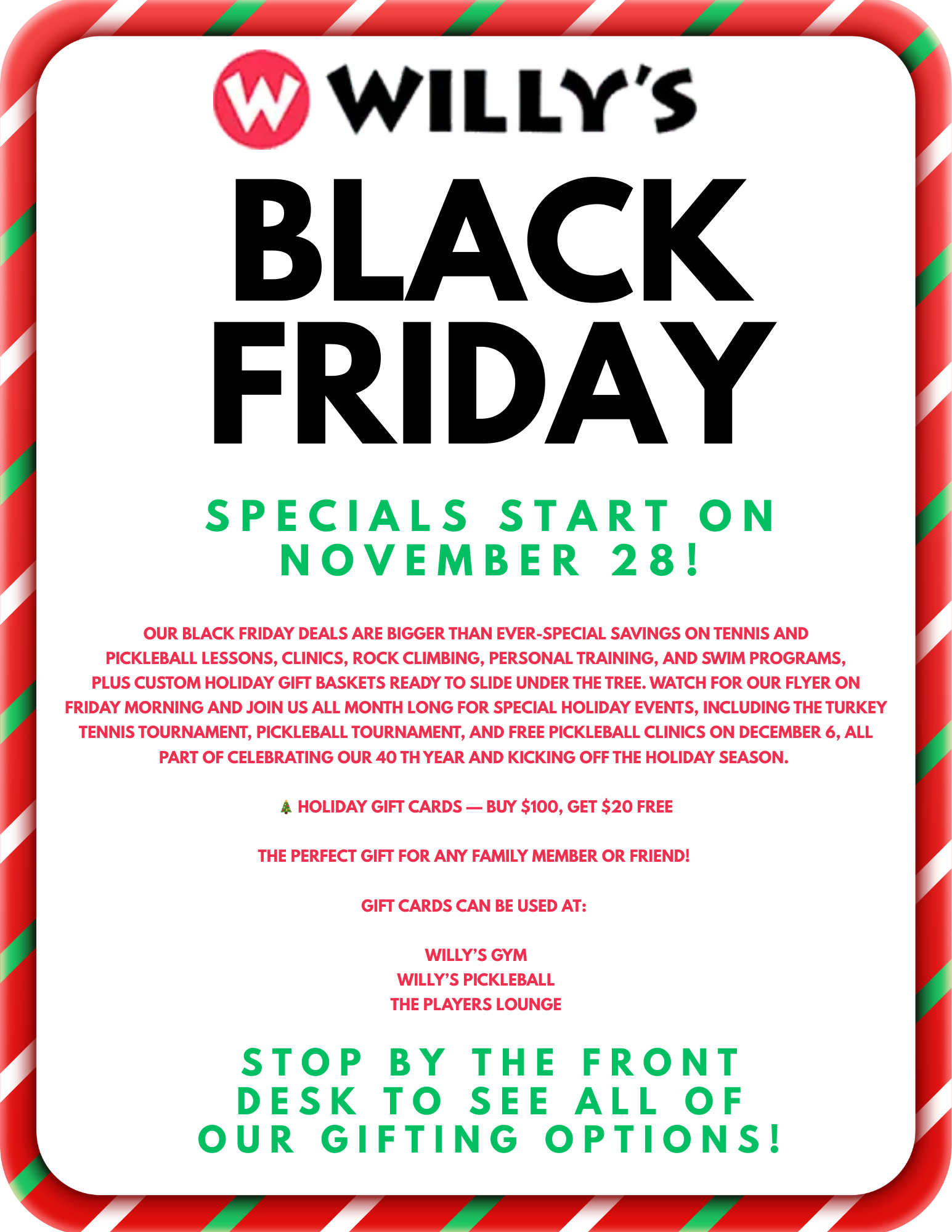 See everything happening at Willy’s this December, including news, programs, and special offers here: